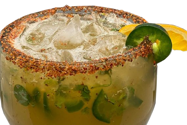 Our amazing Margarita with a Fresh Jalapeno twist cool & Spicy